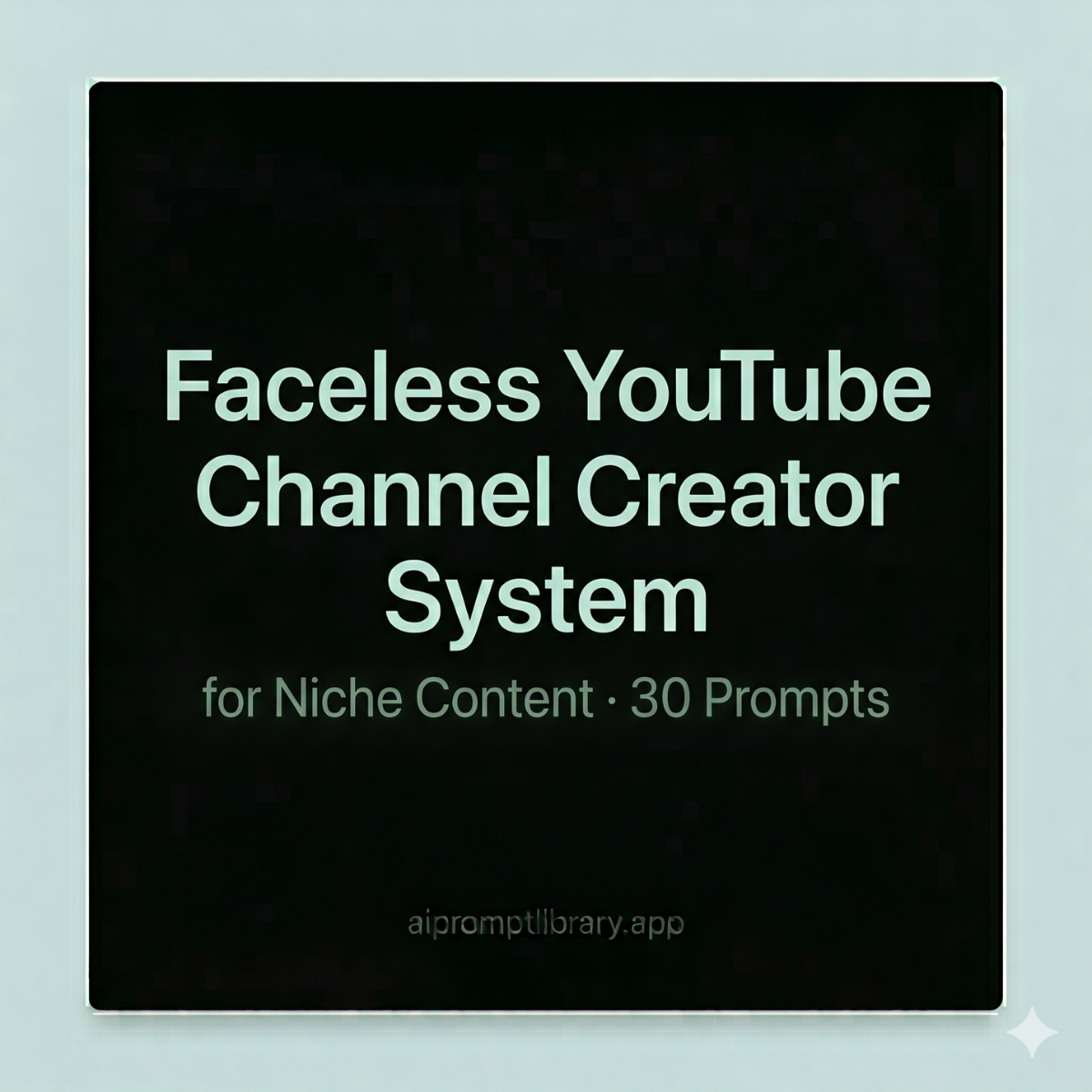 Built around the real faceless loop: research → script → publish → distribute → learn. No on-camera coaching, no generic creator fluff — just the prompts a voiceover-driven channel actually uses.